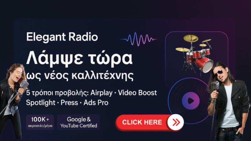 Είσαι νέος/α καλλιτέχνης και θέλεις πραγματική προβολή; Στο Elegant Radio δίνουμε βήμα στη μουσική σου με ουσιαστικά, μετρήσιμα αποτελέσματα: 100.000+ ακροατές/μήνα, ζωντανές εκπομπές, αναφορές από συνεργαζόμενα μέσα και εξειδικευμένο digital marketing. Διάλεξε τον τρόπο που σου ταιριάζει — ή συνδύασέ τους για μέγιστη απήχηση.